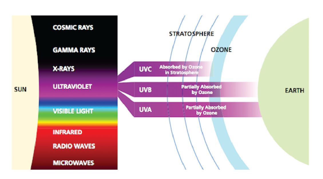 Radiasi Ultraviolet alami terdapat di Cahaya MATAHARI, dan 10% dari radiasi cahaya matahari adalah sinar ultraviolet, namun yang sampai di permukaan bumi hanya cahaya UV-A dan UV-B saja, sedangkan cahaya UV-C tidak sampai ke permukaan bumi.