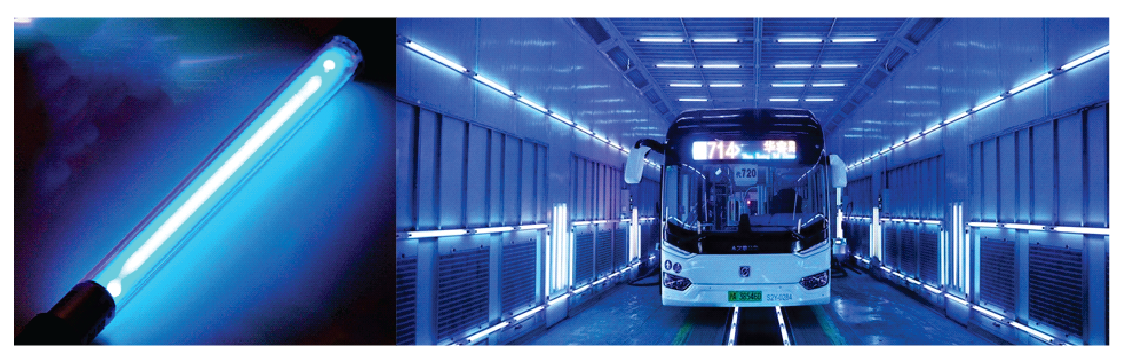Lampu UV-C jenis LPMV (Low-Pressure Mercury-Vapor) mengelurkan radiasi dengan panjang gelombang 254 nanometers(nm) s/d 265nm yang efektif membunuh virus dan bakteri